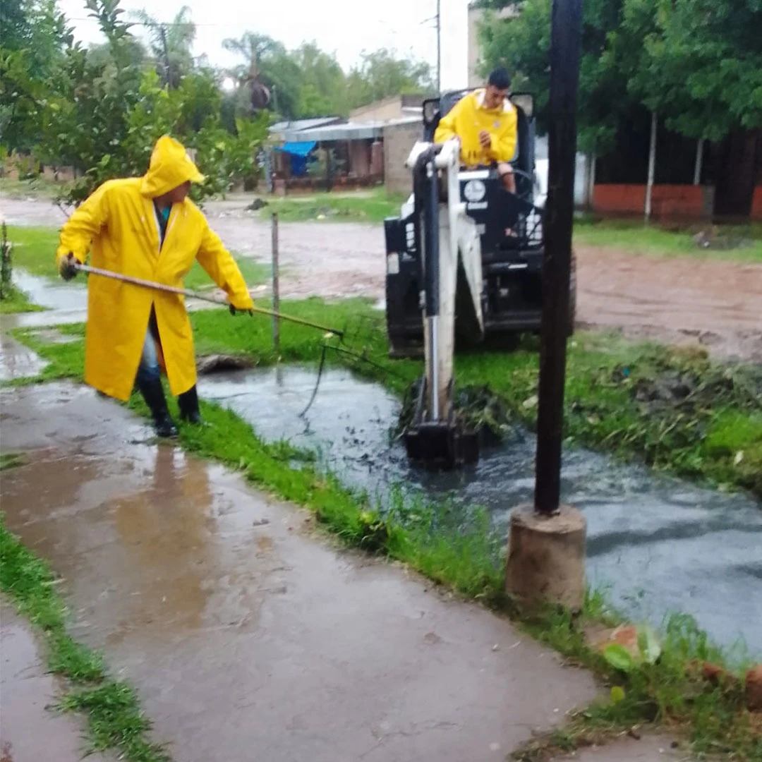 Desde las primeras horas de la mañana, los equipos técnicos y operativos recorrieron diversos barrios para verificar el funcionamiento del sistema pluvial, detectar obstrucciones y atender situaciones puntuales que pudieran afectar el escurrimiento del agua.