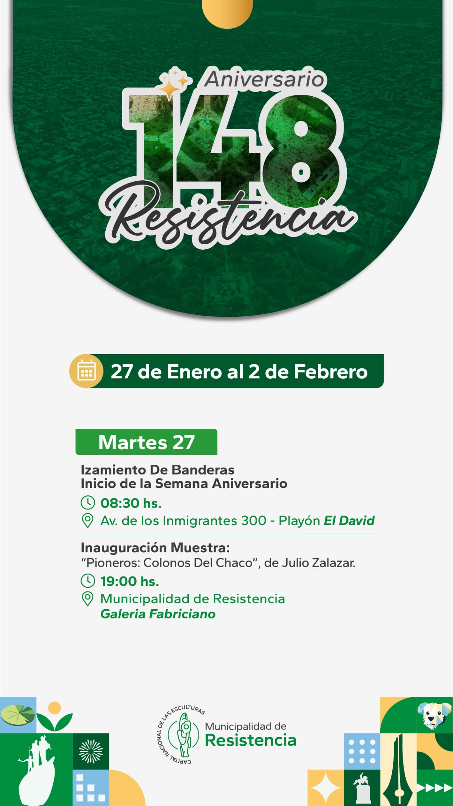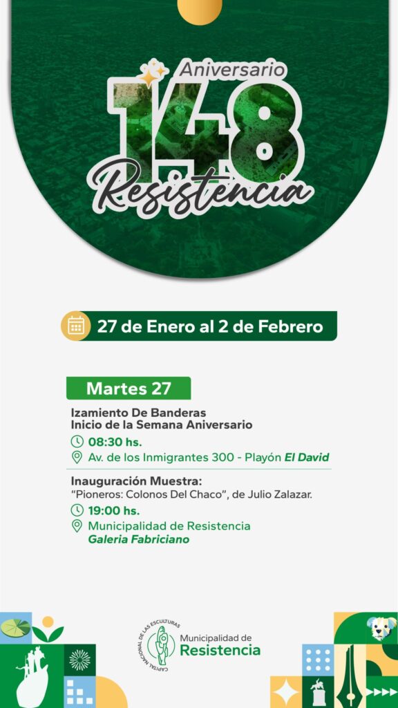 Este martes 27 de enero se abrirá la agenda de actividades, camino a la celebración del 148° aniversario de la ciudad de Resistencia, que será el próximo 2 de febrero.