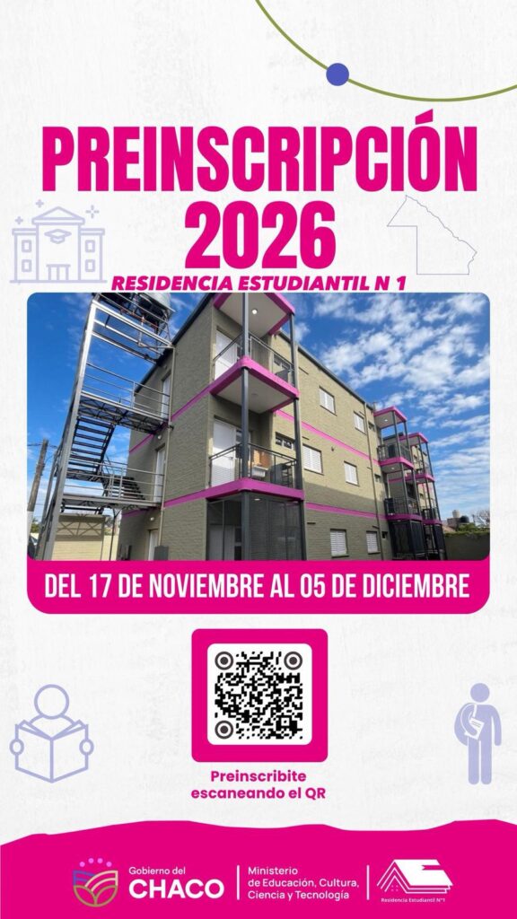 El coordinador de la Residencia Estudiantil 1, Rodrigo Castillo, anunció la apertura del período de preinscripción para estudiantes del interior chaqueño, que necesitan un lugar donde vivir para poder cursar sus estudios universitarios y/o terciarios.