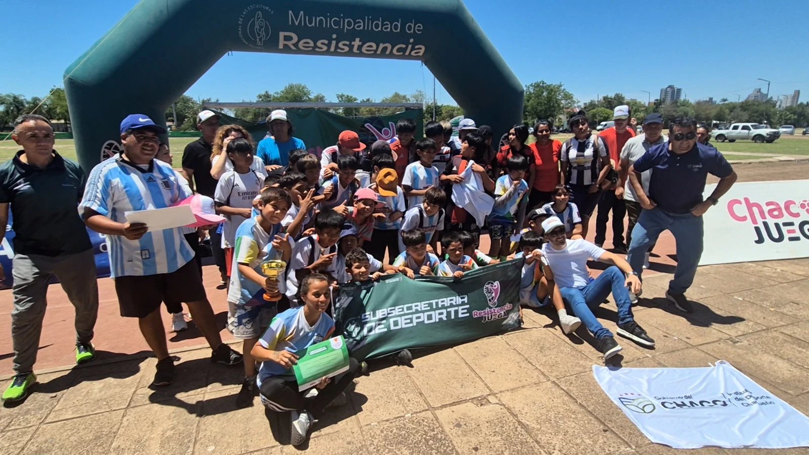 El sábado por la mañana, la pista de atletismo del Parque Intercultural «2 de Febrero» fue escenario del gran cierre del programa «Resistencia Juega», que organizó la gestión del intendente Roy Nikisch. Cientos de chicos de distintos barrios, entre 8 y 12 años, disfrutaron de una jornada a puro fútbol, pero además recibieron premios por su participación. Se entregaron premios y hubo sorteos de bicicletas, gracias al aporte de Lotería Chaqueña.