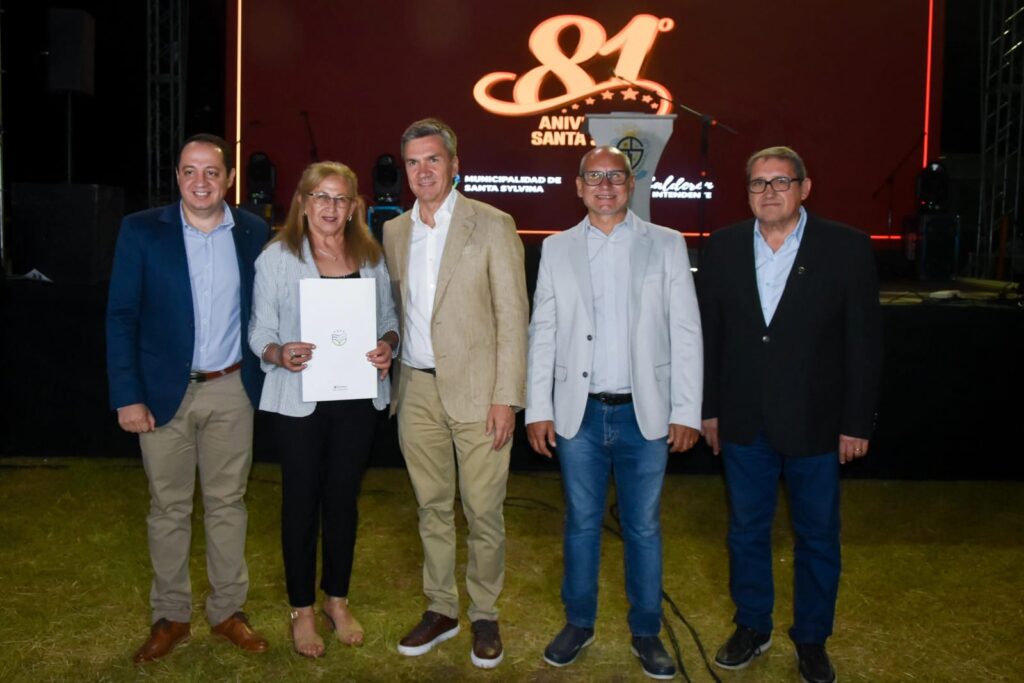 En el marco del aniversario 81° de la localidad, el mandatario provincial valoró la continuidad del proyecto político iniciado por Susana Maggio y que hoy continúa Diego Calderón. “Mi reconocimiento a Susana Maggio, una mujer con un profundo amor por Santa Sylvina, y también a Diego Calderón, que hoy asume esta responsabilidad junto a su equipo para seguir transformando la ciudad”, afirmó. “Hoy Santa Sylvina muestra claramente un antes y un después. Se nota la pujanza de su gente y una administración responsable que planifica y gestiona para que la ciudad no se detenga”, expresó.