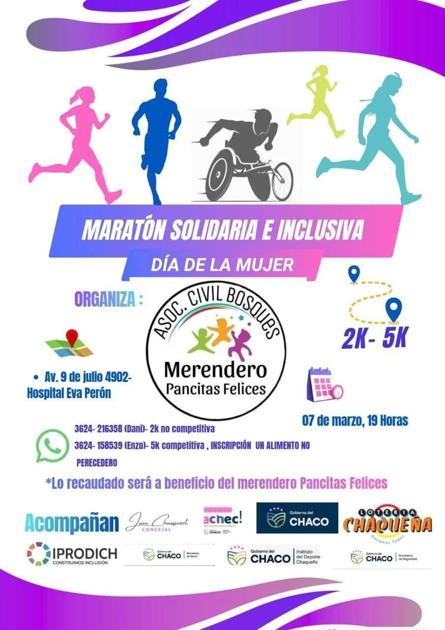 La maratón contará con el acompañamiento institucional del concejal Juan Chassivert, del Instituto del Deporte Chaqueño, el IPRODICH, el Ministerio de Seguridad del Chaco, el Ministerio de Salud Pública del Chaco, Ñachec y Lotería Chaqueña, reafirmando el compromiso del Estado y de las instituciones con las políticas de inclusión, deporte y acompañamiento social.