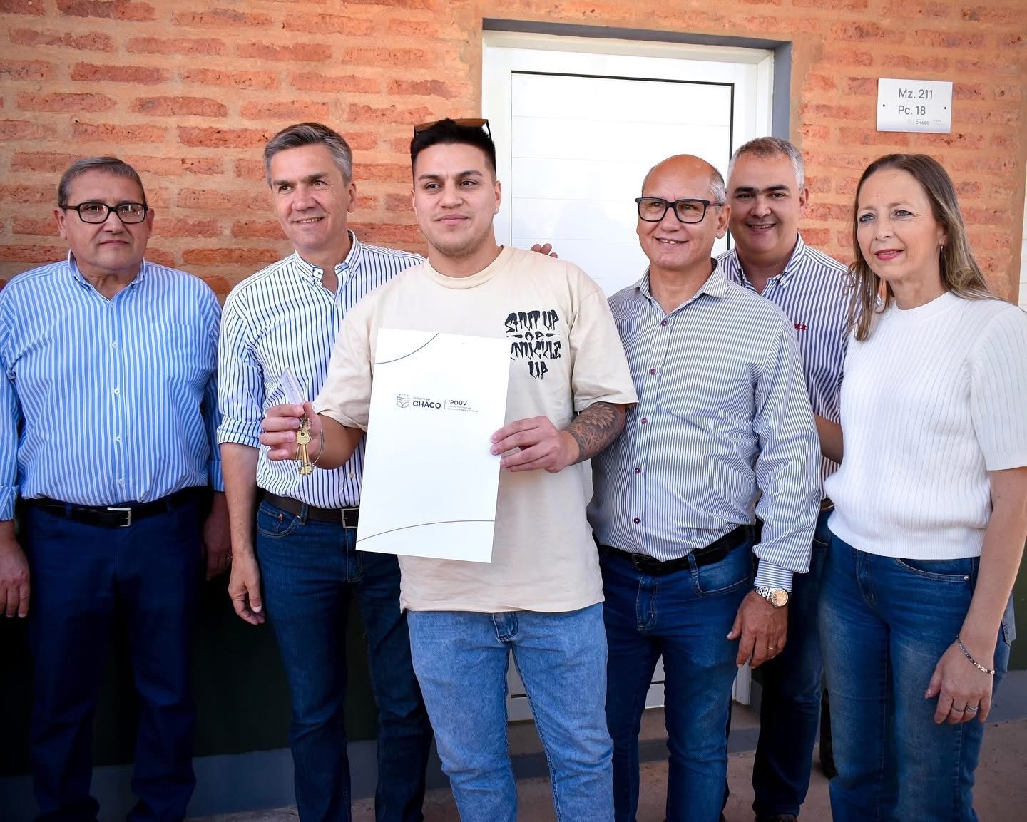 Este lunes, el gobernador Leandro Zdero junto al presidente del IPDUV, Fernando Berecoechea y al intendente Bruno Cipolini, entregaron viviendas del Programa Social y Articulado Ñachec en Presidencia Roque Sáenz Peña, cumpliendo el sueño de familias que esperaban su hogar propio. El gobernador aseguró que la construcción y entrega de viviendas es una política prioritaria para reducir el déficit habitacional y son viviendas que fueron ejecutadas con recursos provinciales. “Desde la gestión estamos cumpliendo sueños a familias que necesitaban una vivienda. Hoy hacemos realidad el sueño de más familias”, destacó Zdero durante el acto, acompañado por funcionarios provinciales y municipales.