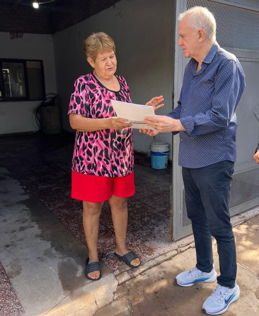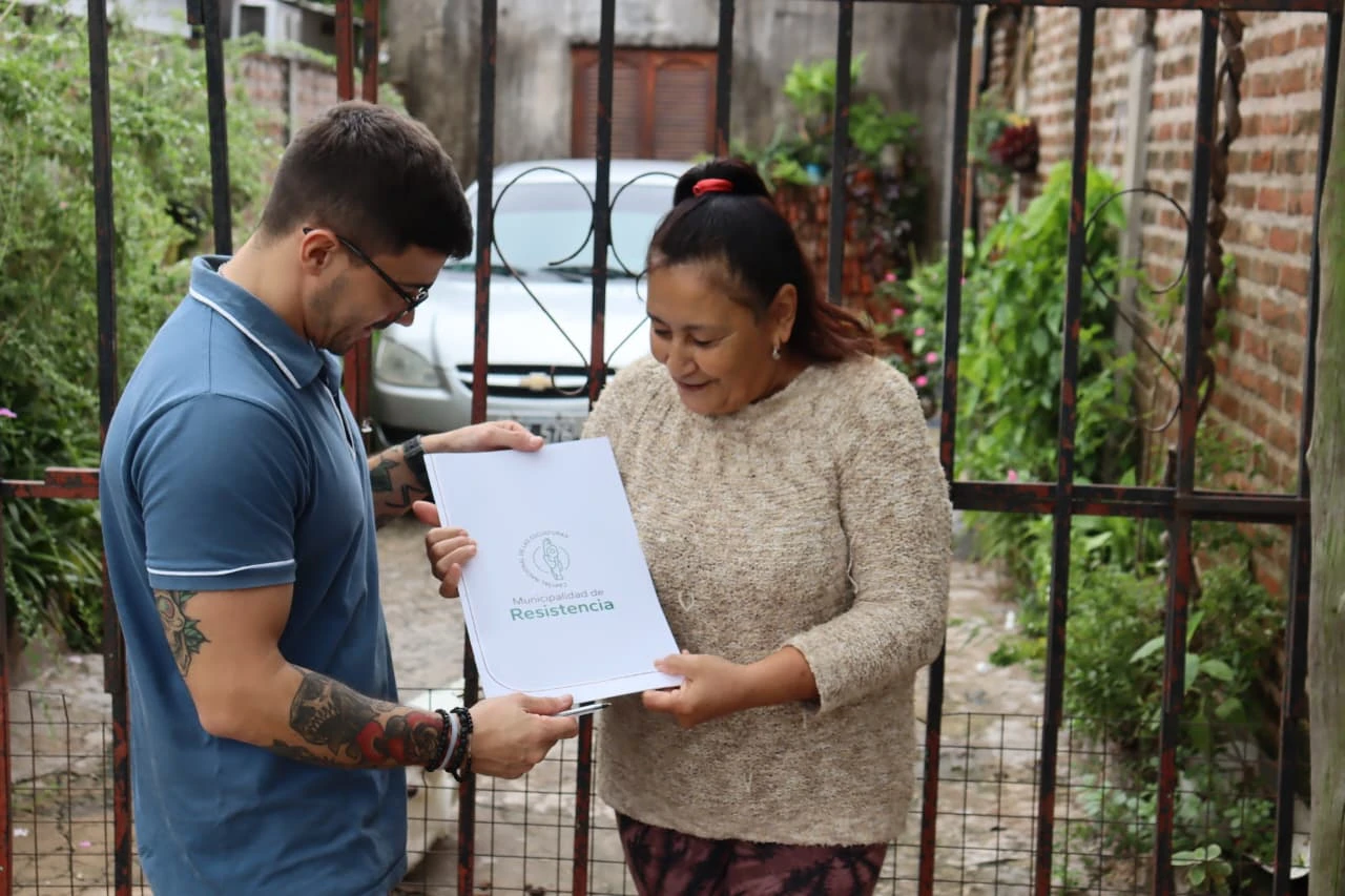 Como es habitual en esta gestión, vecinos de los barrios Juan Bautista Alberdi y Villa Elisa recibieron las documentaciones en sus propias viviendas, con el agregado de la presencia del jefe comunal.